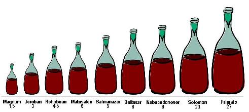 Como curiosidad os paso las denominaciones que tienen los botellones de vino desde el de litro y medio, hasta los veintisiete!!!