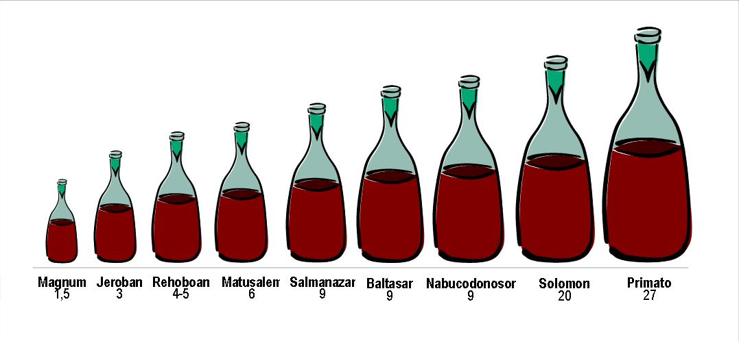 Como curiosidad os paso las denominaciones que tienen los botellones de vino desde el de litro y medio, hasta los veintisiete!!!