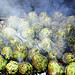 Como exige la tradición sólo las preparamos con aceite de oliva y sal y luego se asan directamente sobre una buena brasa en la que habrá que poner especial cuidado en que la alcachofa se mantenga vertical con objeto de que no se salga el aceite que haya almacenado en su interior, en su corazón, lo que hará que este se ase a la perfección con todo su sabor. Tras veinte minutos aproximadamente, siempre dependiendo de la fuerza del fuego, se podrán retirar y degustar hoja por hoja hasta llegar a su corazón, y por supuesto retirando las primeras hojas que han estado en contacto directo con el fuego.