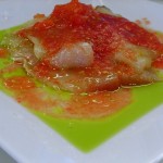 Cuando se presente servir los filetes en un plato o fuente y rallar tomate, previamente pelado, sobre ellos y terminar añadiendo un poco de sal maldon.