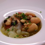 Esta pasada semana hemos preparado esta delicada y finísima alubia con una vinagreta fresca y deliciosa, ideal para la primavera que comienza y para dotarla de algo más de complejidad y contundencia la hemos acompañado con bacalao fresco macerado.