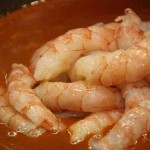 - Cuando ambos estén ligados tras 5-8 minutos de cocción suave añadimos los gambones pelados que sólo cochineamos con la salsa dos o tres minutos para que no se pasen.