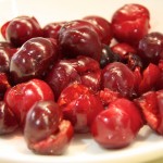 - Cuando vea que está bien batido, levantar el tapón de la batidora y con cuidado de que no se salga, añadir la mitad de las cerezas lavadas y deshuesadas una a una.